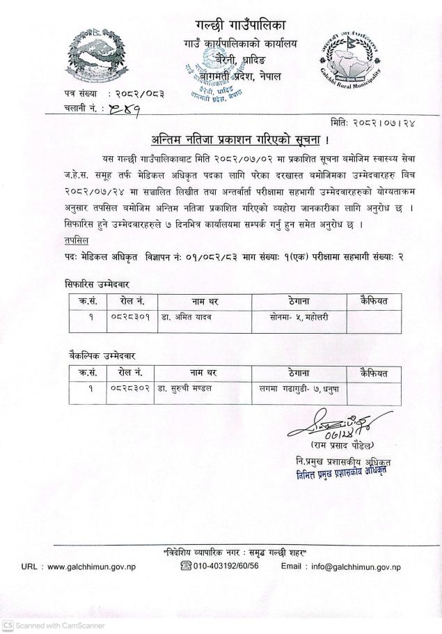अन्तिम नतिजा प्रकाशन गरिएको सूचना ।