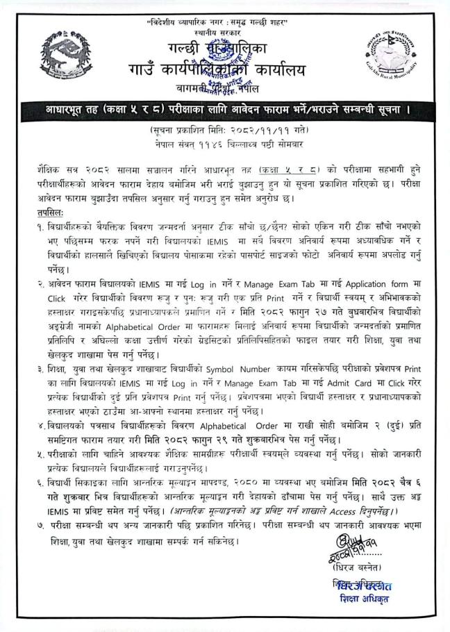 आधारभूत तह कक्षा (५ र ८) उत्तीर्ण परीक्षाको नतिजा प्रकाशन सम्बन्धी सूचना ।