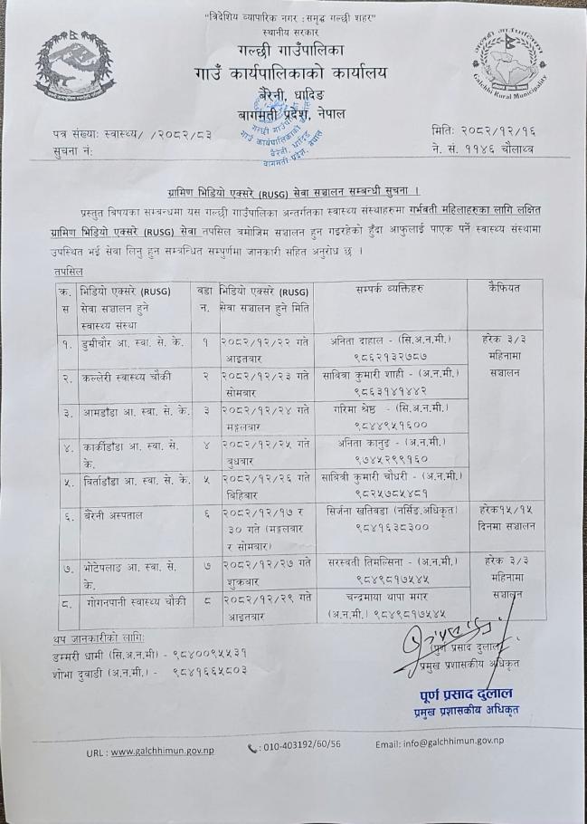 ग्रामिण भिडियो एक्सरे (RUSG) सेवा सञ्चालन सम्बन्धी सुचना ।