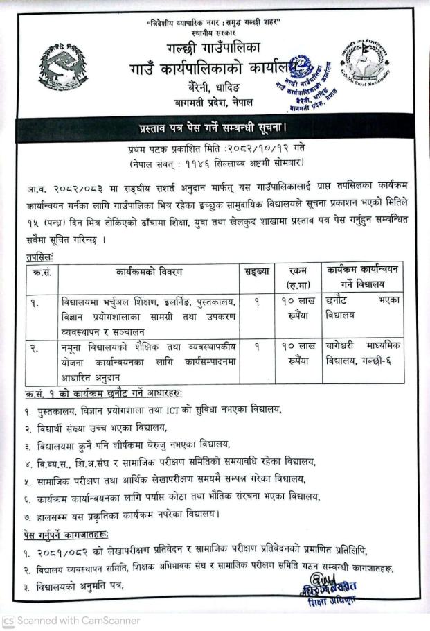 प्रस्ताव पेस गर्ने सम्बन्धी सूचना ।