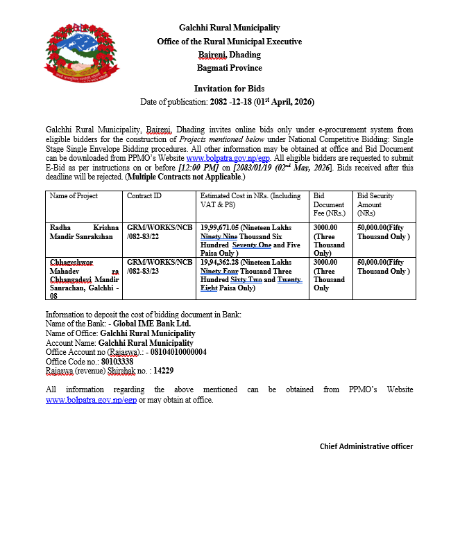 बोलपत्र आव्हान सम्बन्धी सूचना !