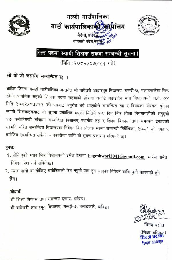 रिक्त पदमा स्थायी शिक्षक सरूवा सम्बन्धी सूचना।