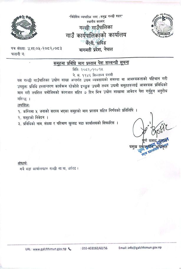 समूहमा प्रविधि माग प्रस्ताव पेश सम्बन्धी सूचना !