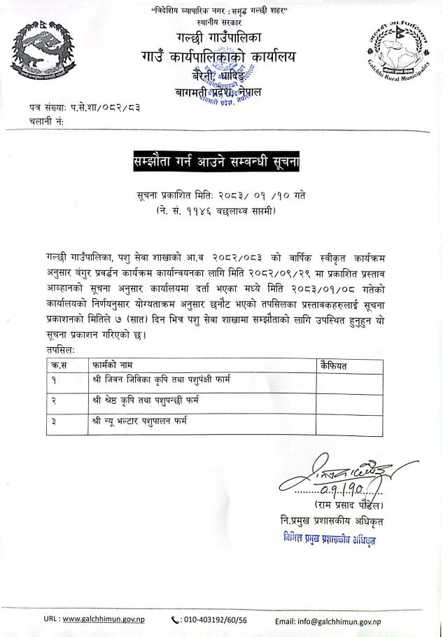 सम्झौता गर्न आउने सम्बन्धी सूचना