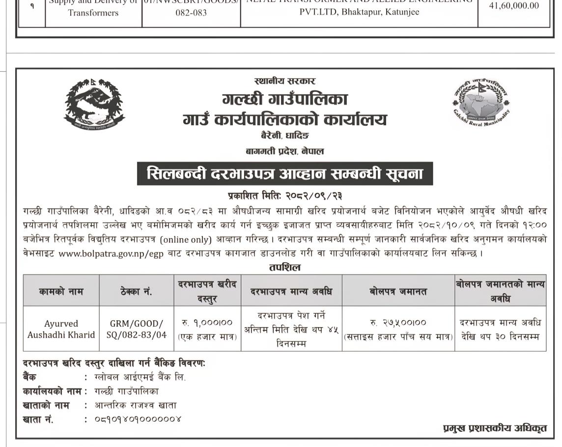 सिलबन्दी दरभाउपत्र आव्हान सम्बन्धी सूचना