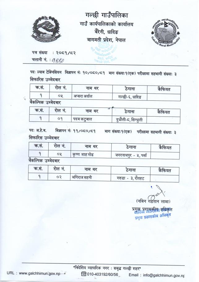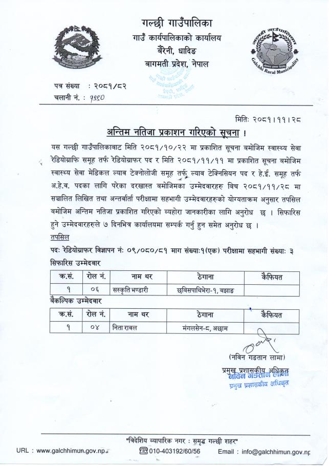 अन्तिम नतिजा प्रकाशन गरिएको सूचना।