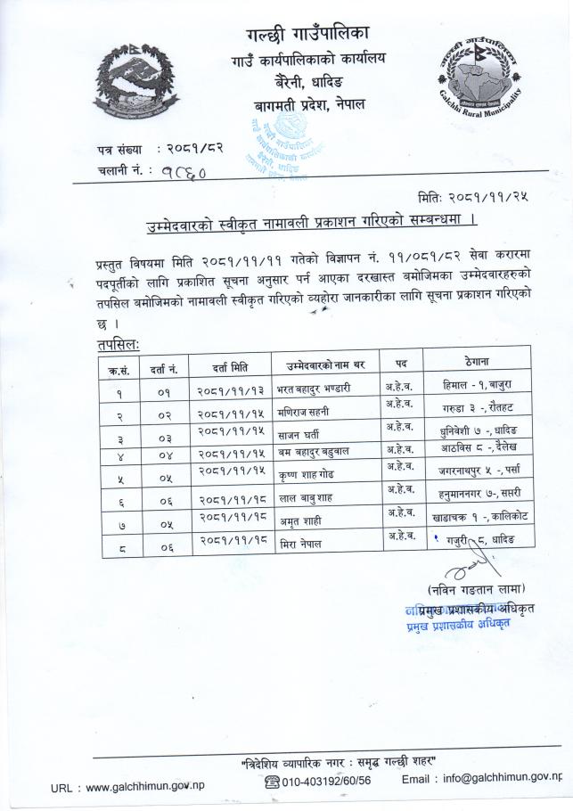 उम्मेदवारको स्वीकृत नामावली प्रकाशन गरिएको सम्बन्धमा।