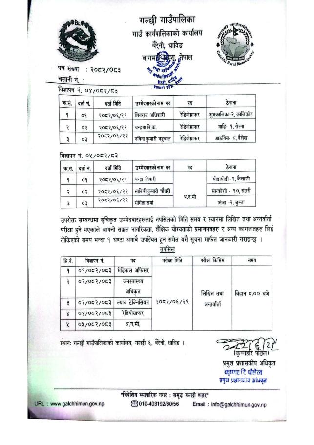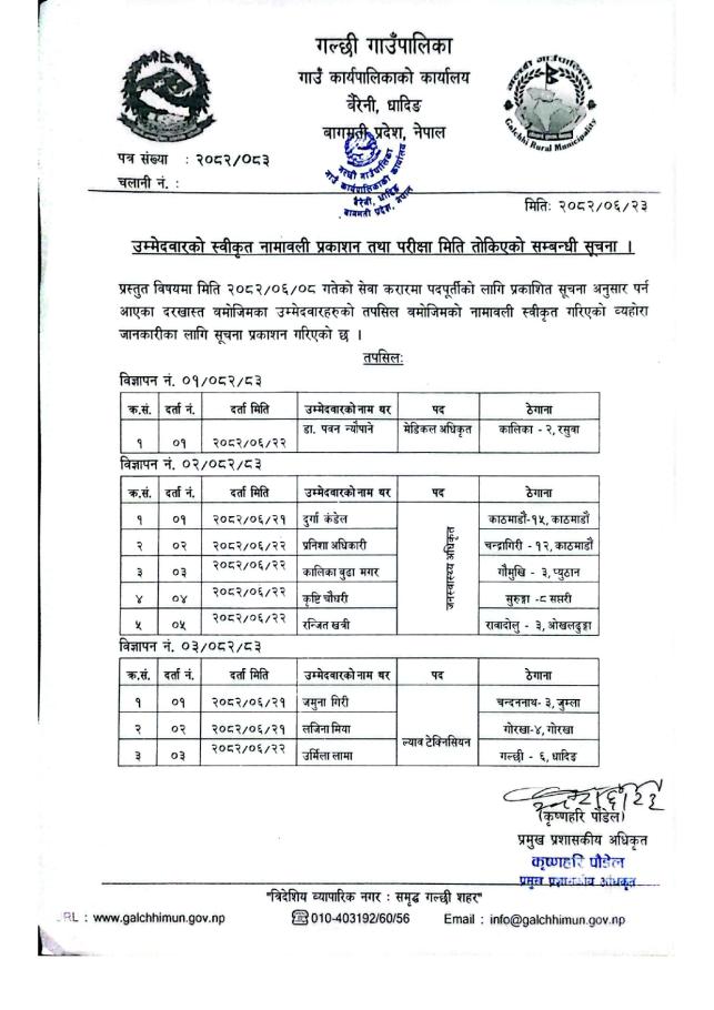 उम्मेदवारको स्वीकृत नामावली प्रकाशन तथा परीक्षा मिति तोकिएको सम्बन्धी सूचना