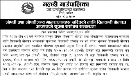 औषधी तथा औषधीजन्य मालसामानहरु खरिदको लागि सिलवन्दी बोलपत्र आब्हानको सूचना संसोधन सम्बन्धमा