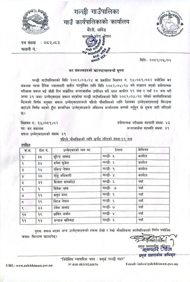 कर संकलकहरुको खटनपटनसम्बन्धी सूचना
