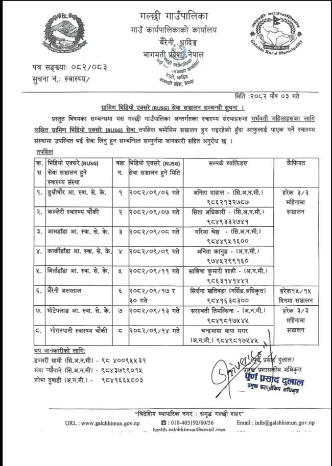 ग्रामिण भिडियो एक्सरे (RUSG) सेवा सञ्चालन सम्बन्धी सुचना ।