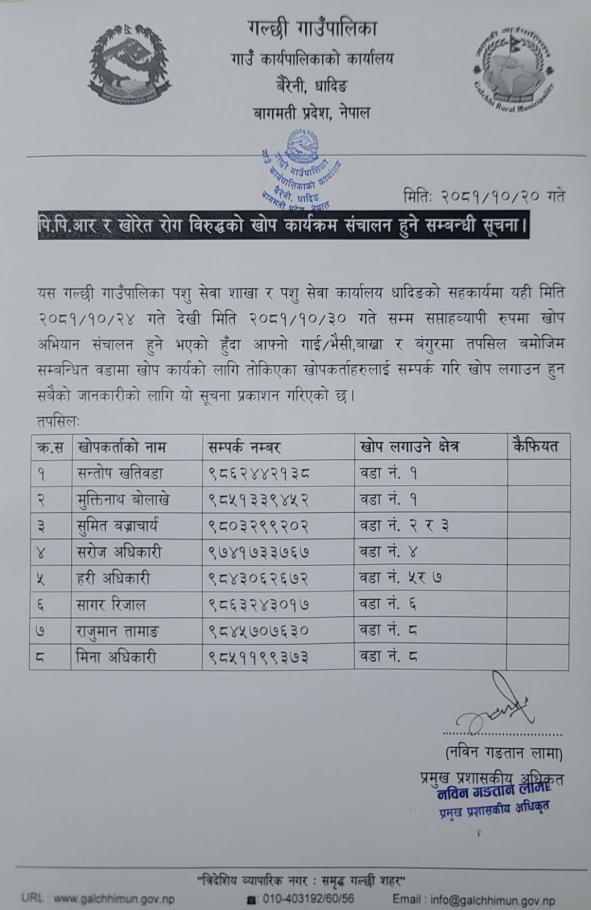 पि.पि.आर. र खाेरेत राेग विरूद्वकाे खाेप कार्यक्रम संचालन हुने सम्बन्धि सूचना।