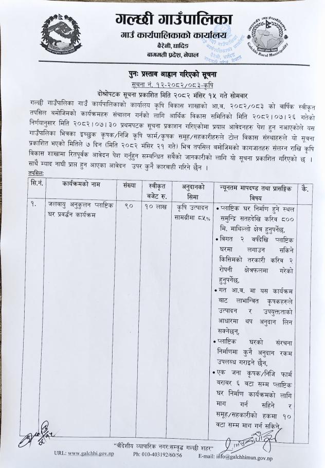 पुनः प्रस्ताव आव्हान गरिएको सूचना !