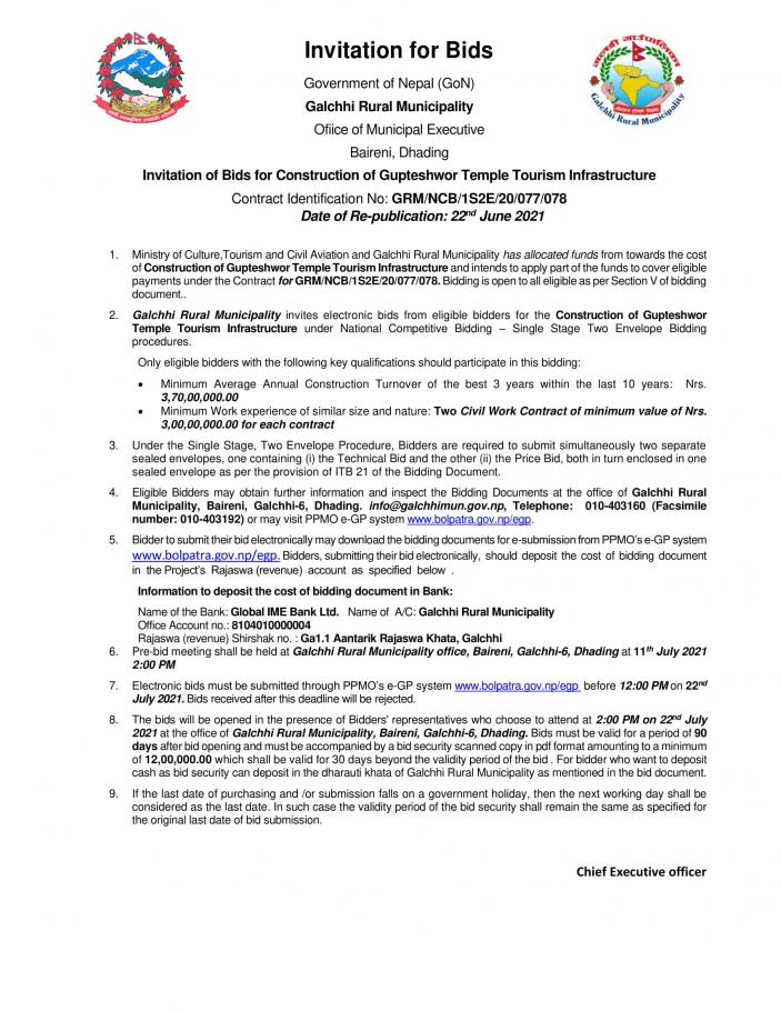 बोलपत्र आह्वानको सूचना -(ठेक्का नं. GRM/NCB/1S2E/20/077/078)