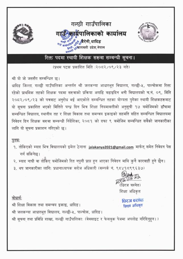 रिक्त पदमा स्थायी शिक्षक सरूवा सम्बन्धी सूचना।