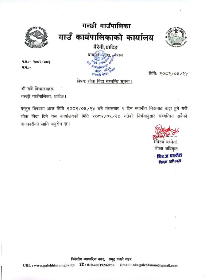 शोक बिदा सम्बन्धी सूचना