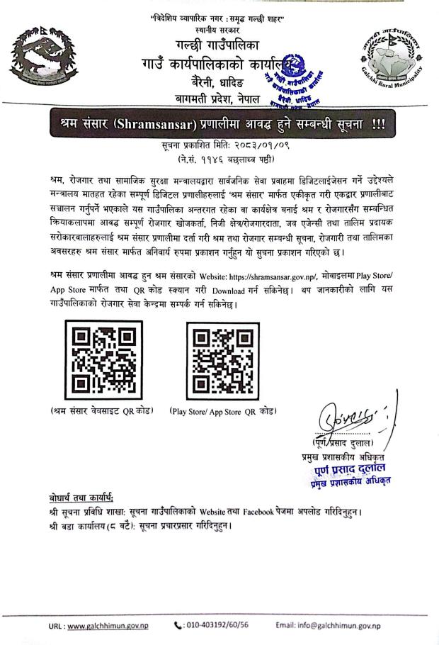 श्रम संसार (Shramsansar) प्रणालीमा आवद्ध हुने सम्बन्धी सूचना !