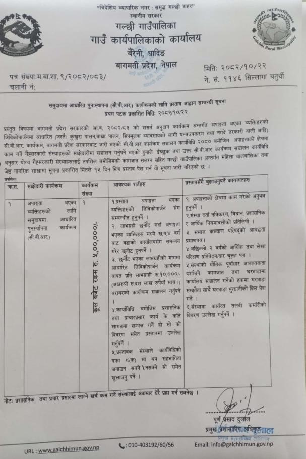 समुदायमा आधारित पुनःस्थापना (सी.बी.आर) कार्यक्रमको लागि प्रस्ताब आह्वान सम्बन्धी सूचना