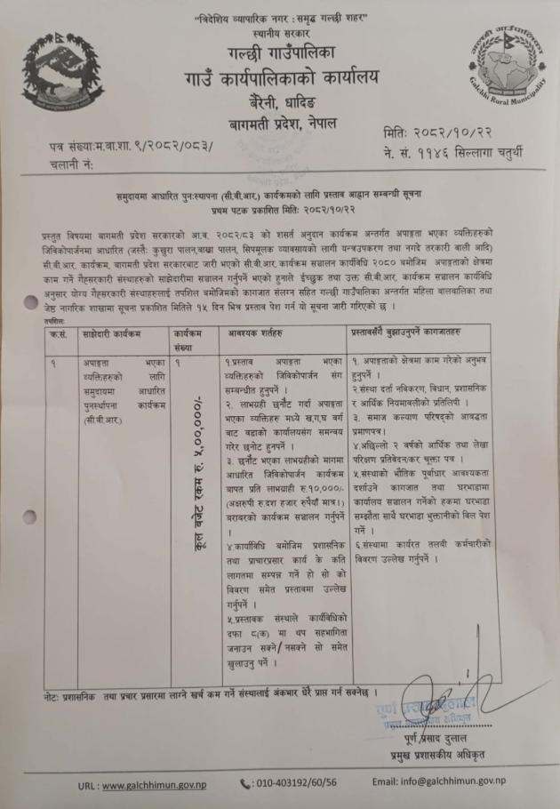 समुदायमा आधारित पुनःस्थापना (सी.वी.आर) कार्यक्रमको लागि प्रस्ताव आह्वान सम्बन्धी सूचना
