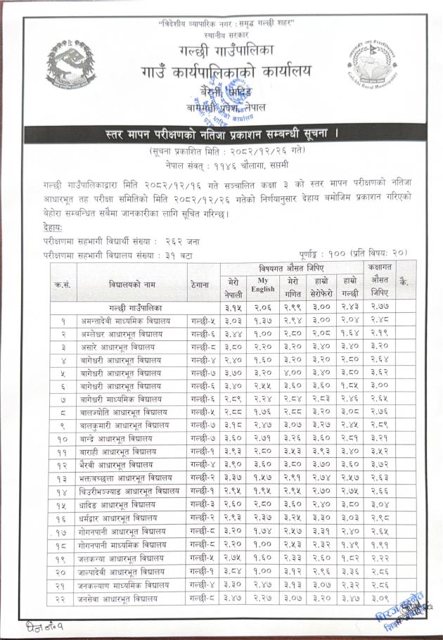 स्तर मापन परीक्षणको नतिजा प्रकाशन सम्बन्धी सूचना !