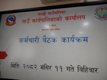प्रमुख प्रशासकीय अधिकृत श्री पूर्ण प्रसाद दुलाल ज्यू को अध्यक्षतामा आयोजित पहिलो कर्मचारी बैठकका झलकहरू: