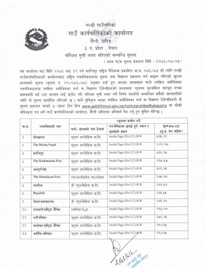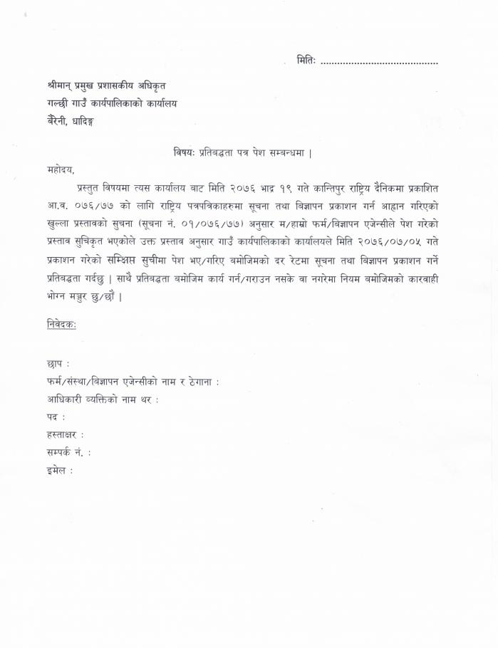 सूचना तथा बिज्ञापन प्रकाशनका लागि सम्क्षिप्त सुची तयार गरिएको सम्बन्धि सूचना (प्रतिबद्धता पत्र समेत)